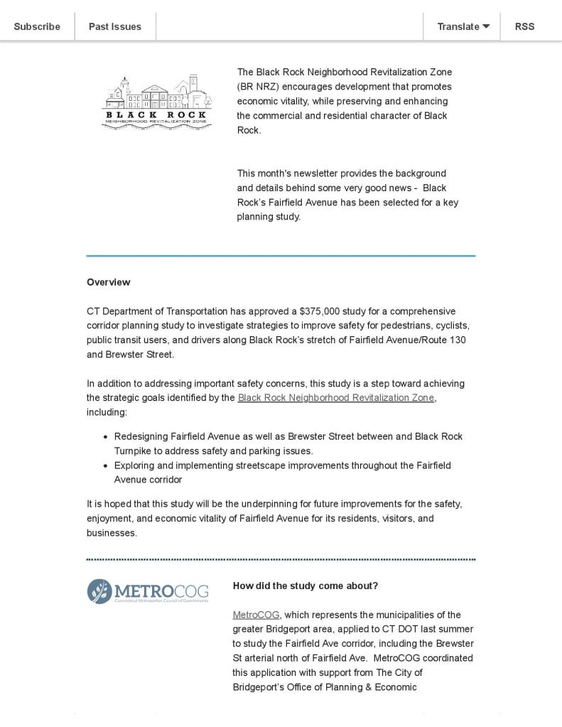Great news! Black Rock’s Fairfield Avenue has been selected for a comprehensive corridor planning study that will specifically address important safety and congestion concerns. The study which may begin as soon as this spring is an important step toward on the way to achieving Black Rock NRZ’s strategic goals.